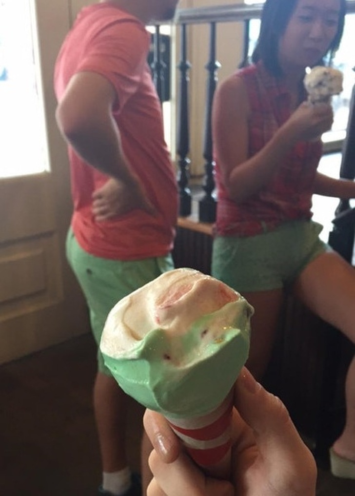 1. Some couples wear matching outfits and this time managed to also color coordinate with an ice cream!