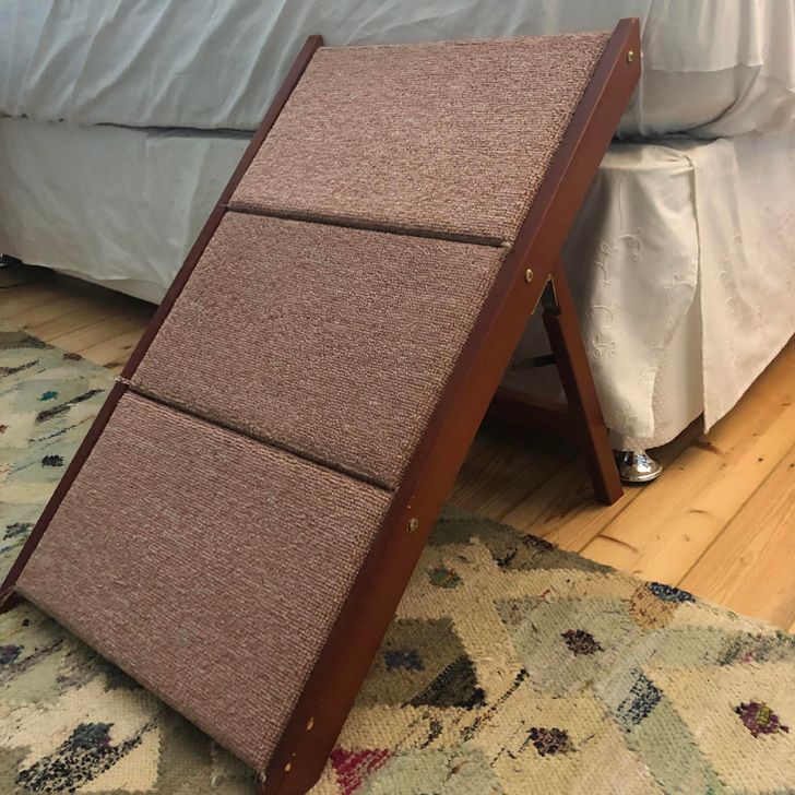 5. One lady bought this ramp so her little dog can climb up into her bed, but the dog just keeps sliding down.