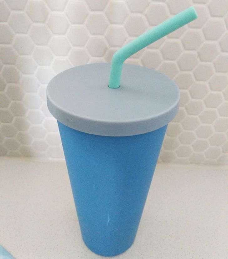 12. This plastic cup comes with a straw and a lid that makes the cup airtight. You can’t suck any liquid out!