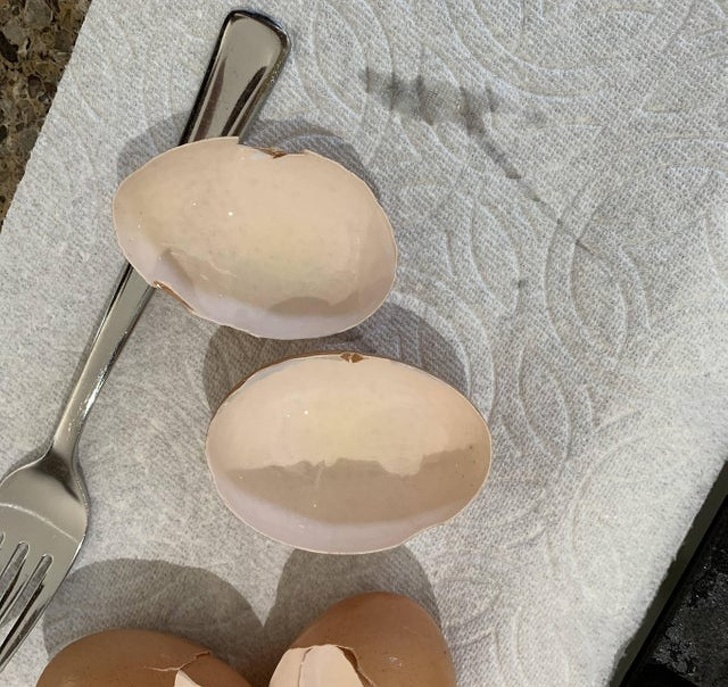 12. It looks like an Easter egg, but it's a real egg that broke perfectly in two.