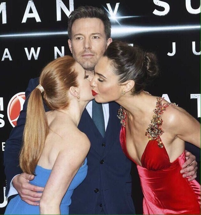 4. Ben Affleck's attention is elsewhere, despite the beauties in his arms!