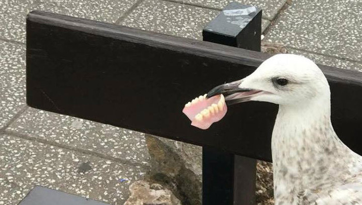 12. How did this seagull manage to steal some dentures?
