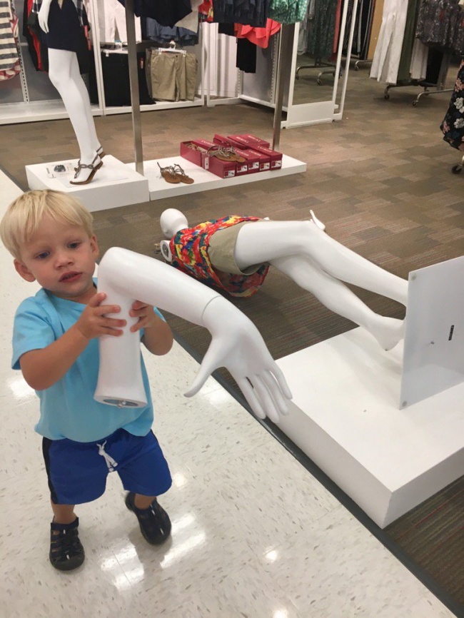 17. "I asked my son to help me 'sort out' my store. He came over with this mannequin's arm and tried to hit me with it."