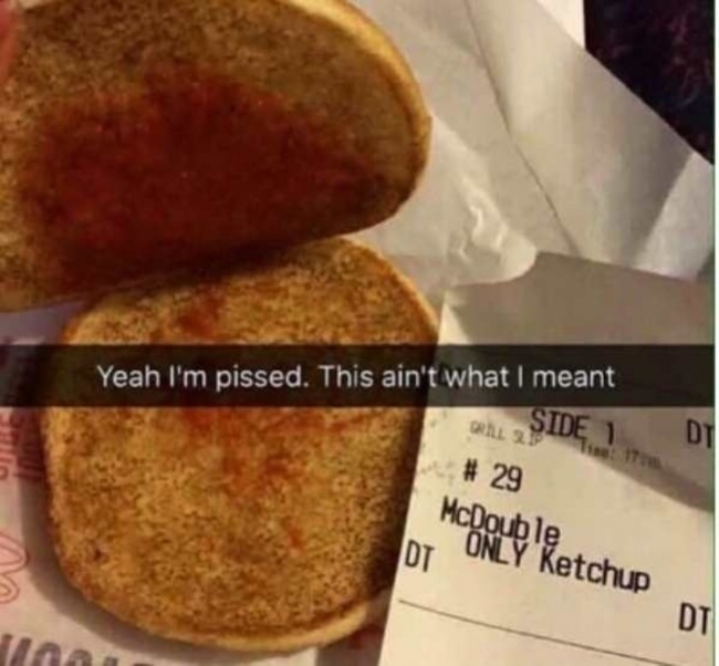 8. When you just want ketchup in your McDouble. Yeah, we'd be pissed too!
