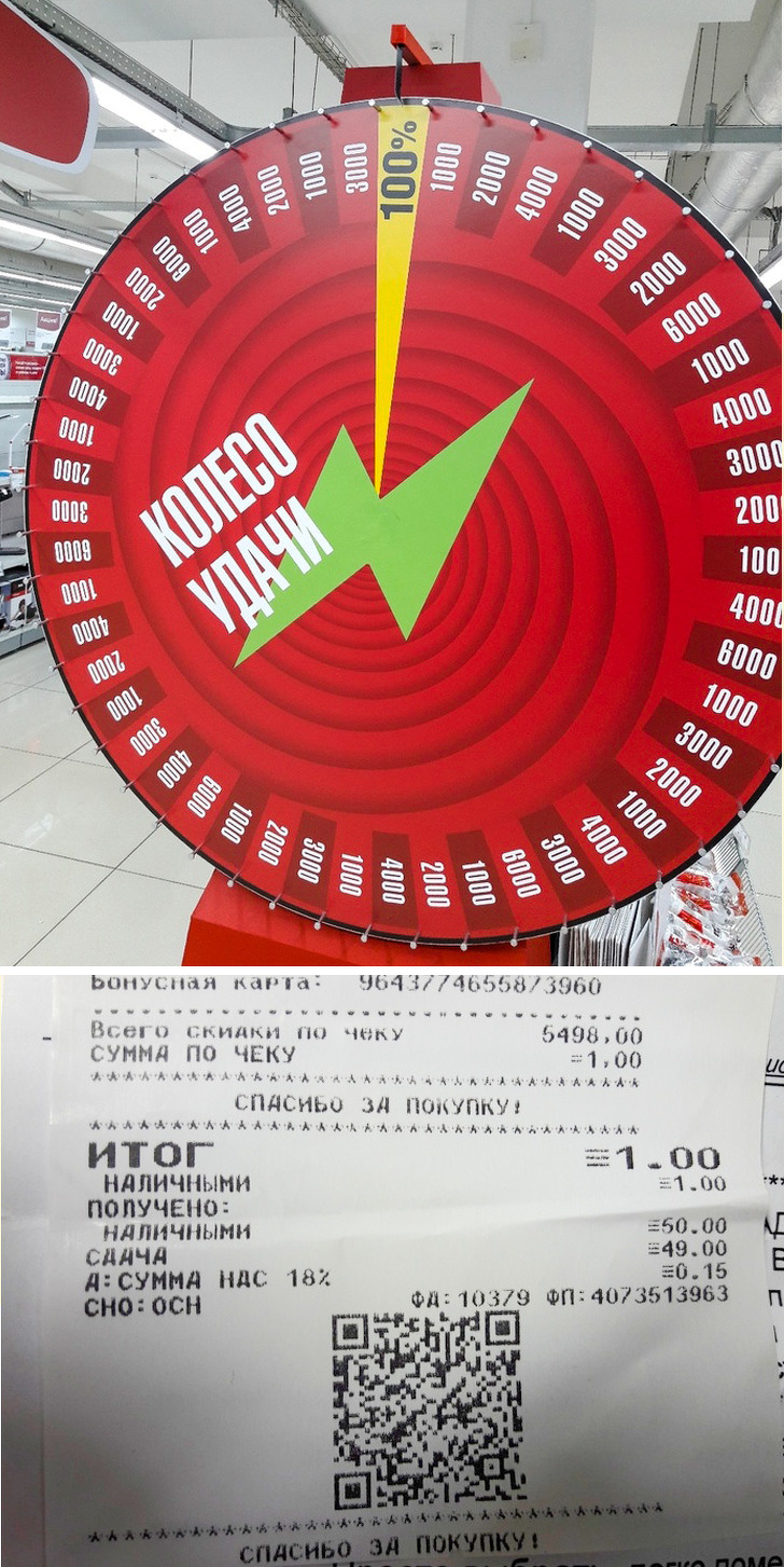 17. This guy bought a microwave and before leaving the store he spun the wheel and won his money back