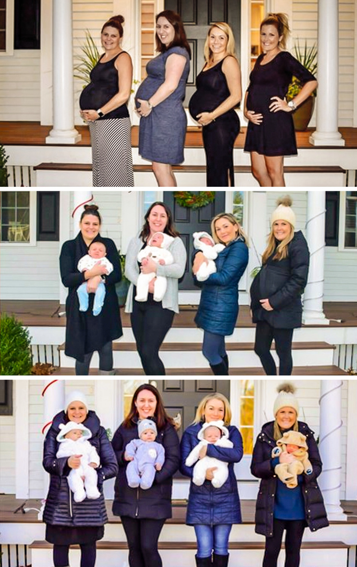 12. These friends all fell pregnant at the same time and gave birth during the same week.