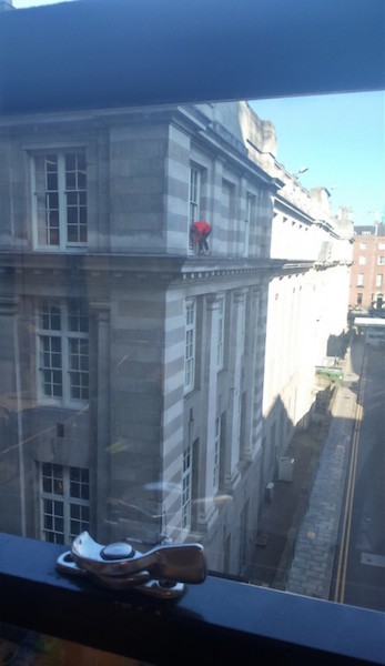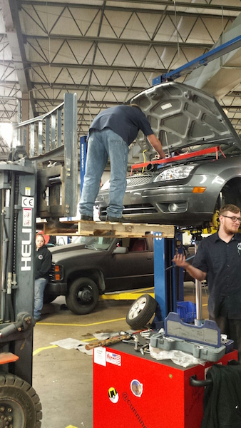 10. When your ladder is too short, and you only have things with wheels on hand to make it taller