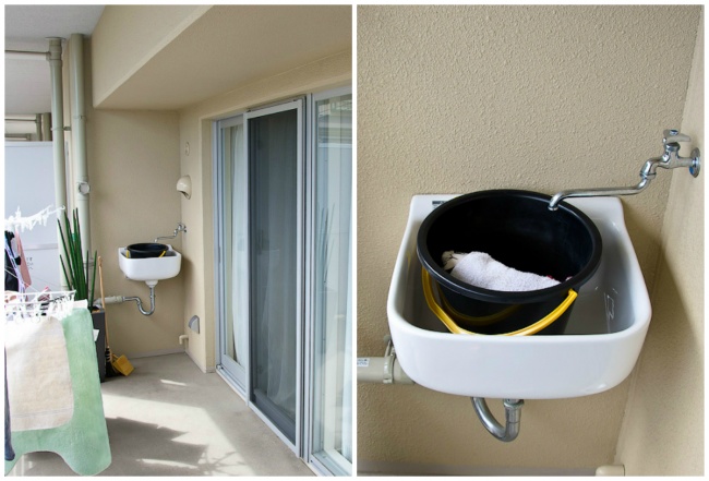 Japanese apartments are usually very small, but incredibly well-designed. For example, balconies often feature a sink so that occupants can easily water their flowers and plants