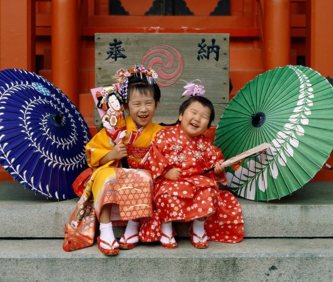 Each November 15th, Japan holds the Shiti-Go-San (seven-five-three) Festival in honor of all 7, 5 and 3 year-olds. These numbers are thought to bring good luck and these ages represent important steps in a child's life.