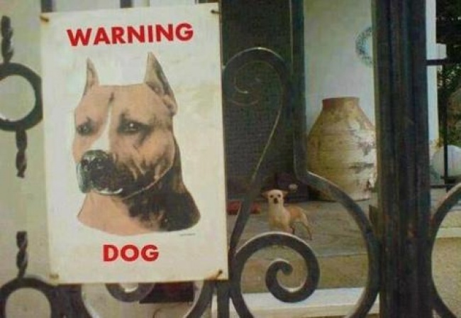 10. Use a dangerous dog on the warning, even though you only have a tiny pooch