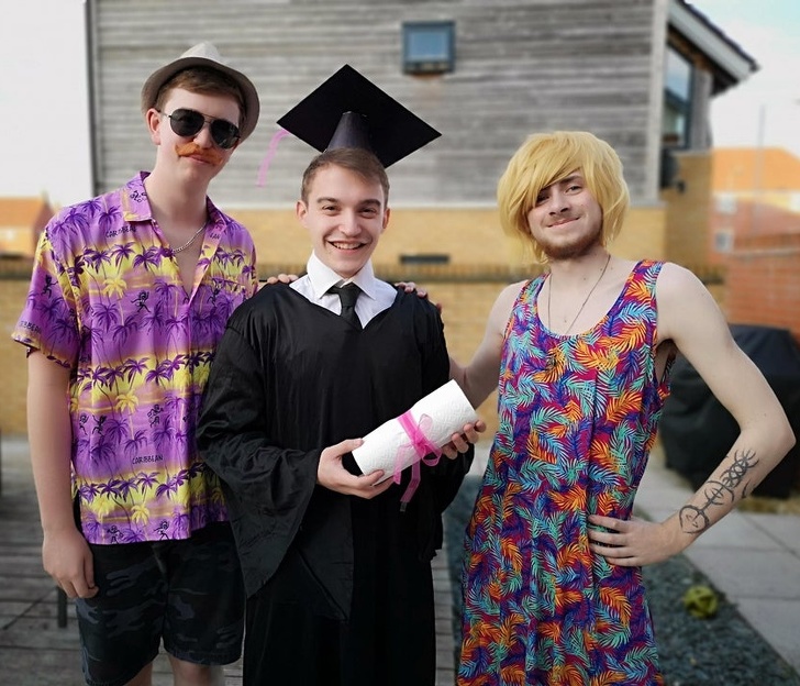 9. This guy's parents couldn't be there for his graduation, so his friends stepped in to help!