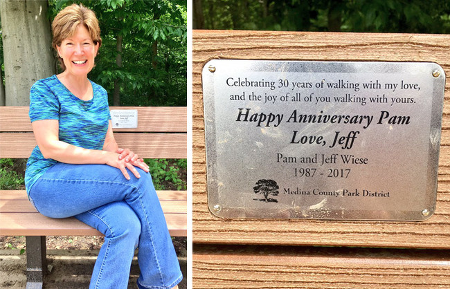 8. This woman got a special gift... Her husband dedicated a bench at the park where they always walk together!