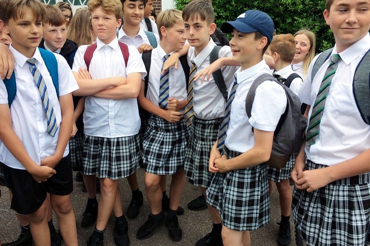 1. Students at Isca school in Exeter were banned from wearing shorts in summer, so they turned up in skirts!