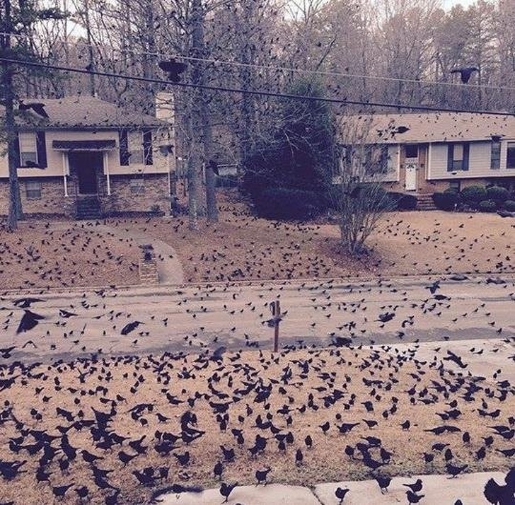 2. Imagine seeing this through your window, like in Alfred Hitchcock's The Birds