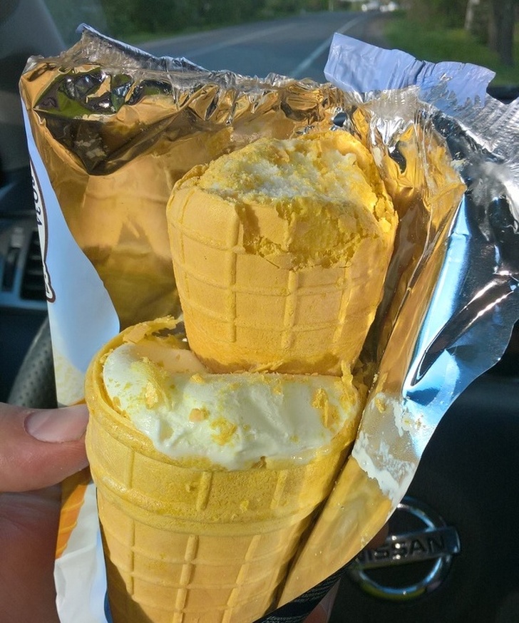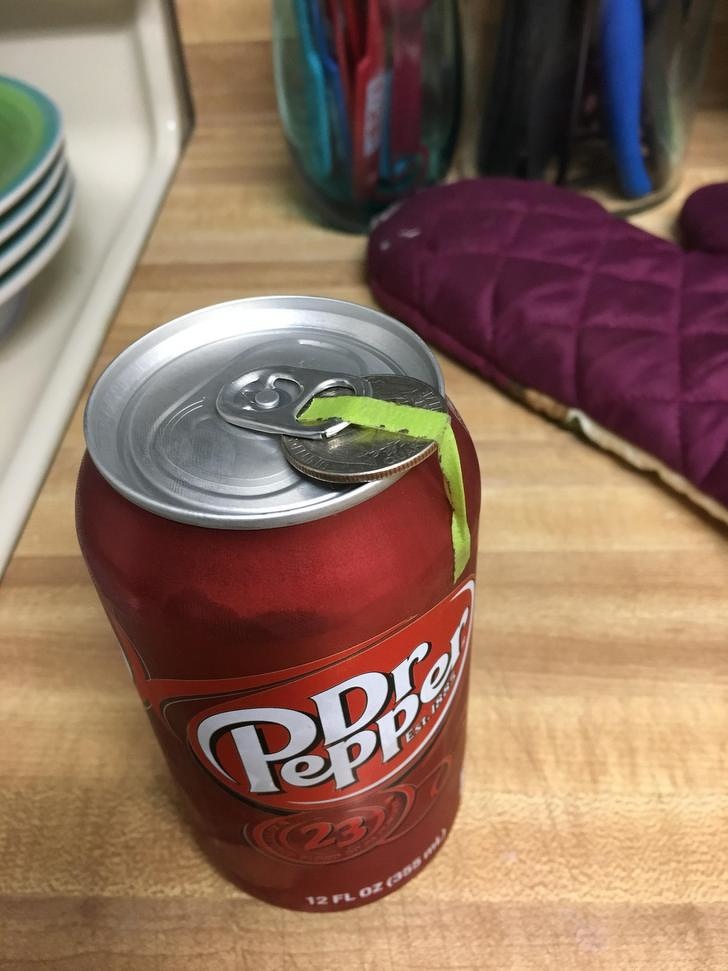 1. A drink dispenser that delivered a can of soda complete with a stuck coin