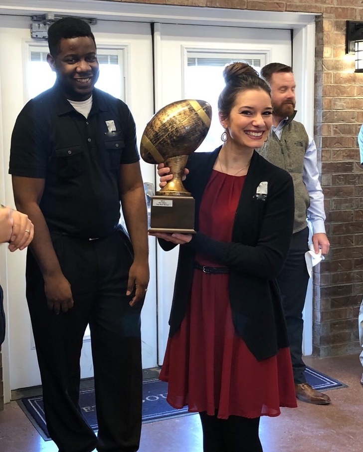 4. This lady won the Fantasy Football league and couldn't be happier that she beat these two guys!
