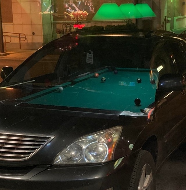 16. Did this person have a pool table installed in his car or is it just a reflection?