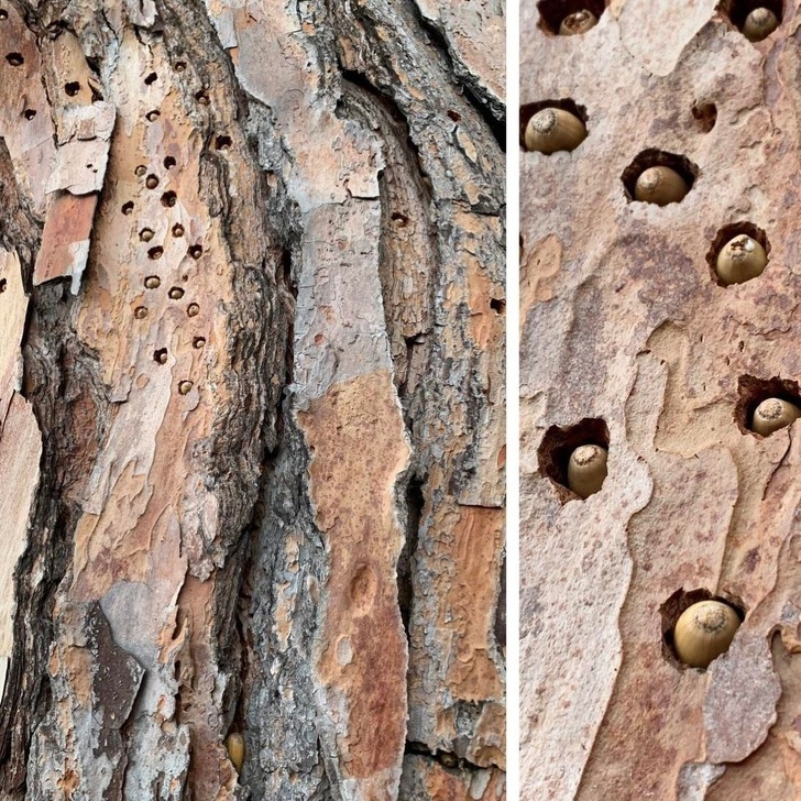 13. Squirrels filled every hole in this tree with acorns!