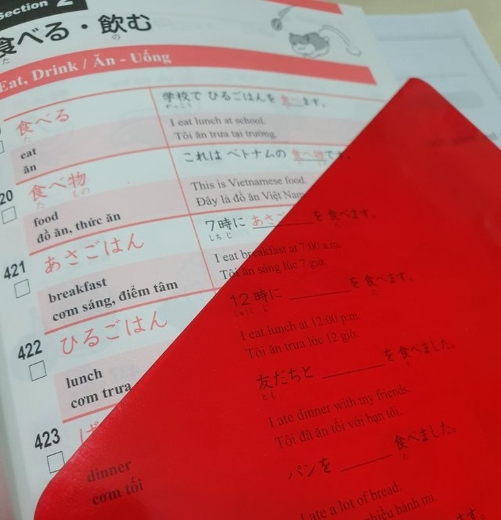 15. This Japanese vocabulary book comes with a red filter to hide the answers…