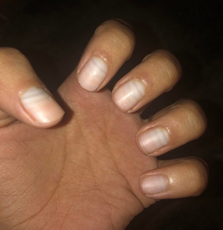 4. “You can see where my nails stopped and started growing again between my chemo cycles.”