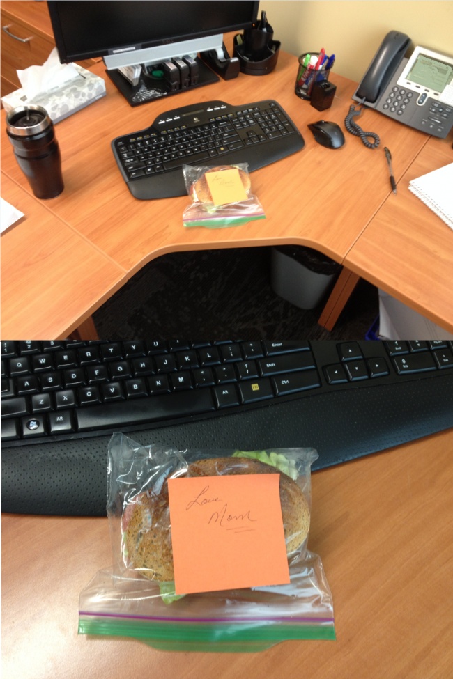 12. "I'm a 34 year-old father of 3 boys and I work for an IT company. Sometimes when I get into work, I'll find little gifts from my mom sitting on my desk!"