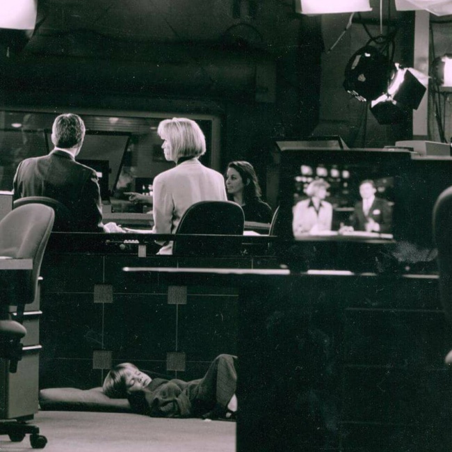 13. "My mom was a TV presenter and often took me to work with her. Here's me having a nap behind her desk whilst she was on air!"