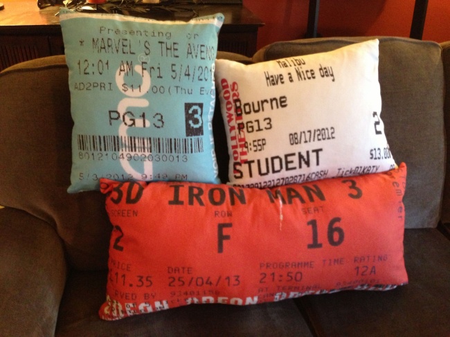 4. This mom found movie theater stubs in her son's pants, so got them printed onto cushions as a unique and special gift!