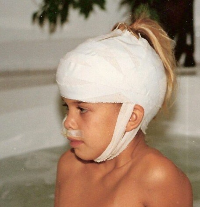 15. "My head was bandaged up after an accident and my mum made a hole for my ponytail so that people wouldn't think I was a boy!"