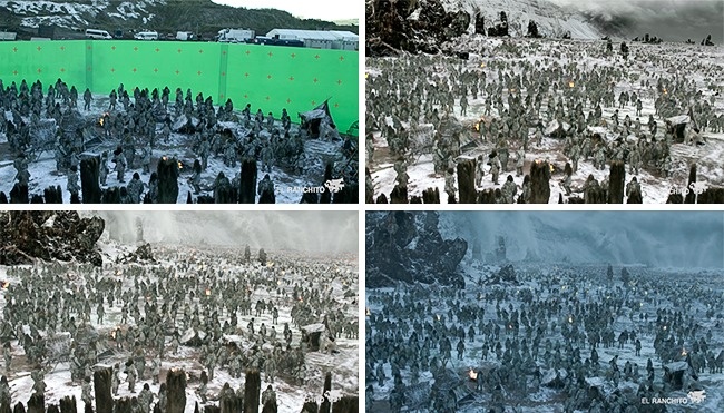 There’s no secret about how digital videos are made; we've all seen pictures of these scenes filmed on a green screen (or sometimes a blue screen, because those are the only colors that are virtually absent from human skin, so there’s more contrast). The process is quite interesting, because it allows us to "cut" the background from any scene and "paste" it onto a different backdrop. The possibilities are endless with this system, and the wildest special effects can now be done. Check out the chroma key technique used in the “Game of Thrones” video.