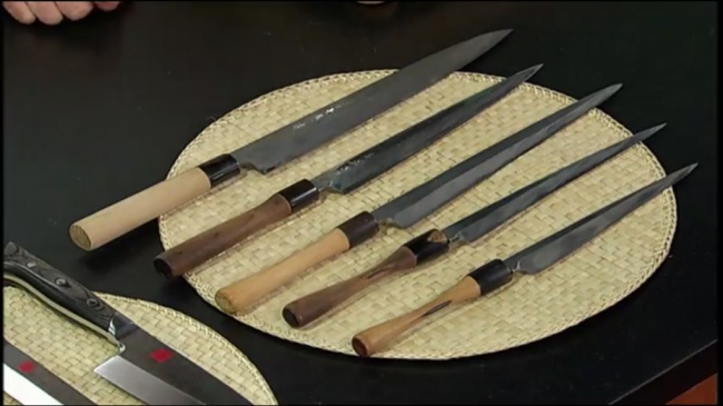 13. Chef Masaharu Morimoto's knives. The first one is new, the others have been used every day for 3 years!