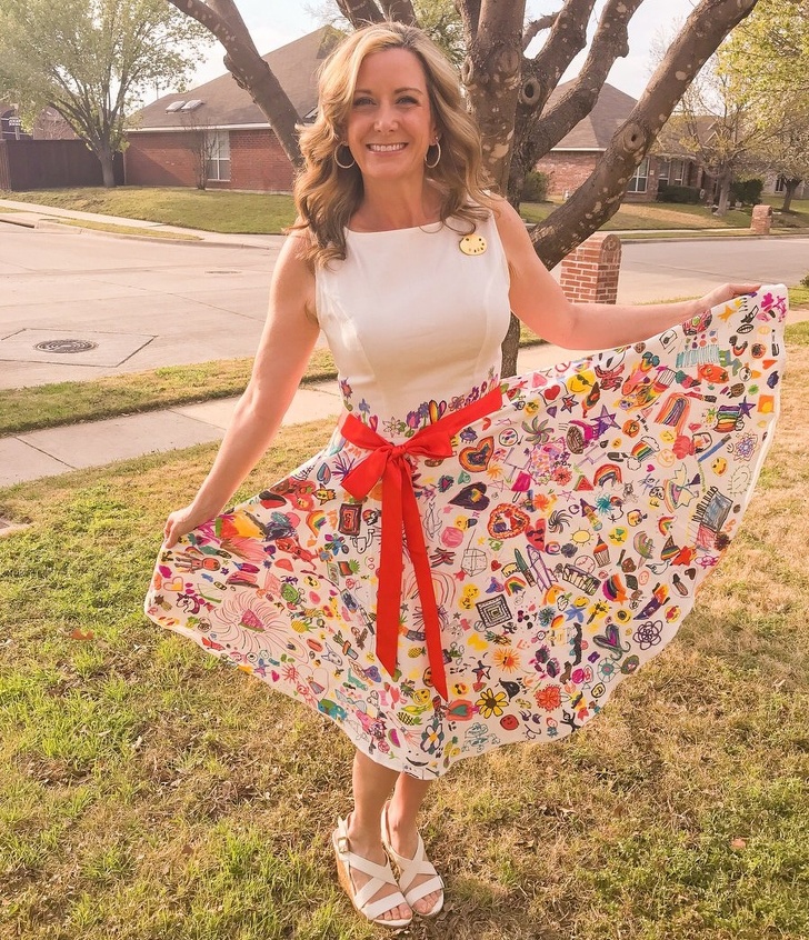 16. “My mom is an amazing art teacher!” She asked her students to draw something on her dress!