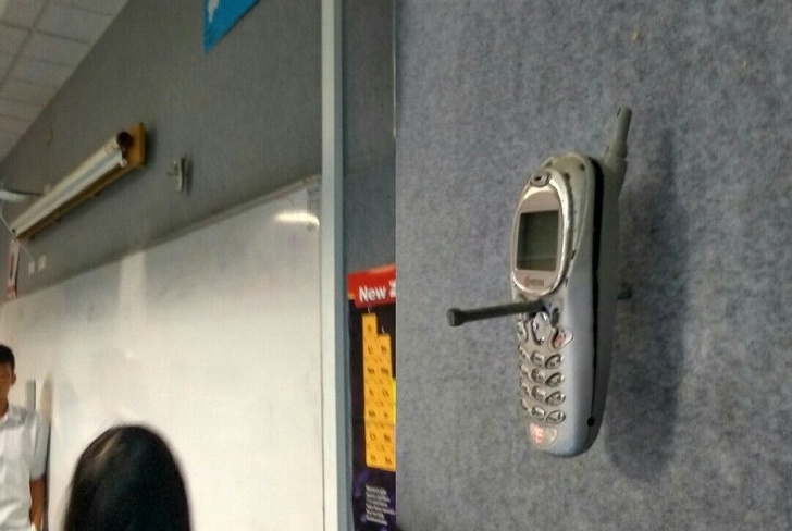 17. This phone is almost 20 years old... Back then, the teacher nailed it to the wall, because his student was using it.