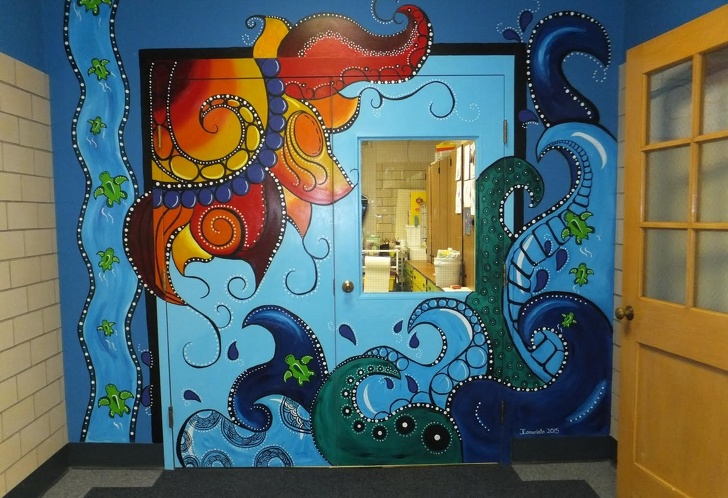 13. A surprise for the students at this school – their art teacher took advantage of summer vacation to paint the entrance to the classroom.