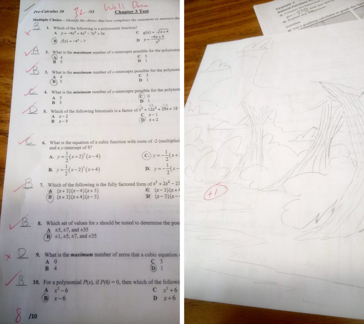 12. “My math teacher gave me an extra point for this drawing on the back of the test.”