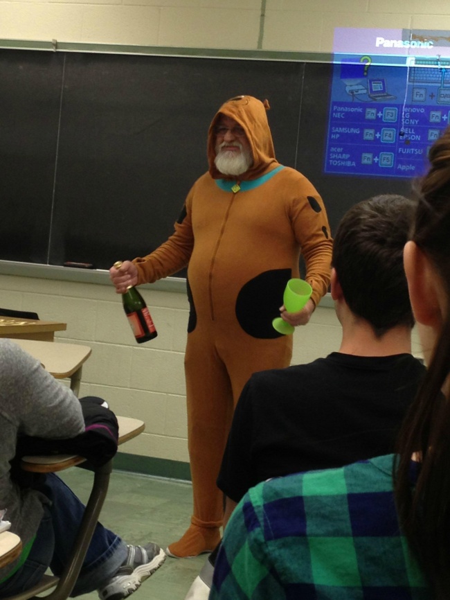 Don't settle for candy if you want to congratulate your students... This guy promised to dress up as Scooby Doo and offer everyone a glass of champagne if they all got A's for their homework... What better way to motivate a class?