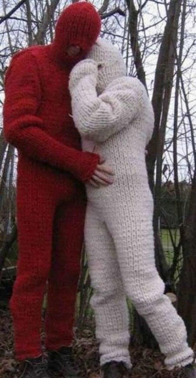 19. Don't have a large sweater? Then knit yourselves wooly onesies!