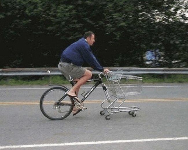 A 2-in-1 solution for trips to the grocery store or for transporting heavy stuff, but again we're wondering how he could handle a bumpy ride or a sharp turn!