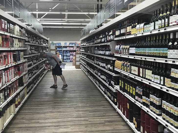 14. A wooden floor in the wine section of a French supermarket reduces the chance of bottles breaking if they fall!