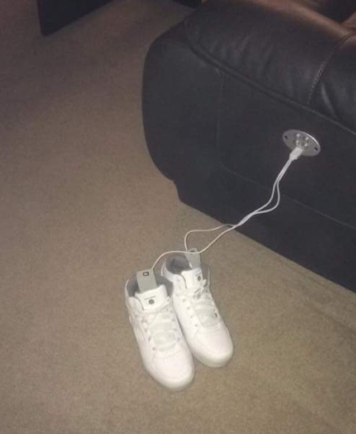 5. He’s charging his sneakers using the couch...