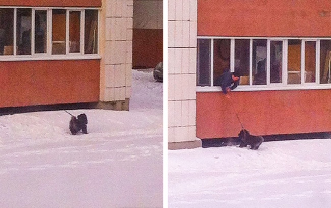 13. Is it too cold to take your dog for a walk? If you live on the ground floor, try this technique next time it's too chilly!