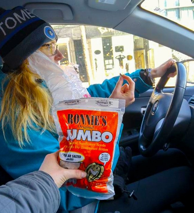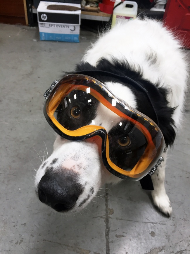 20. This dog follows his owner everywhere, even in places that could be dangerous. The solution? Protective doggie goggles!