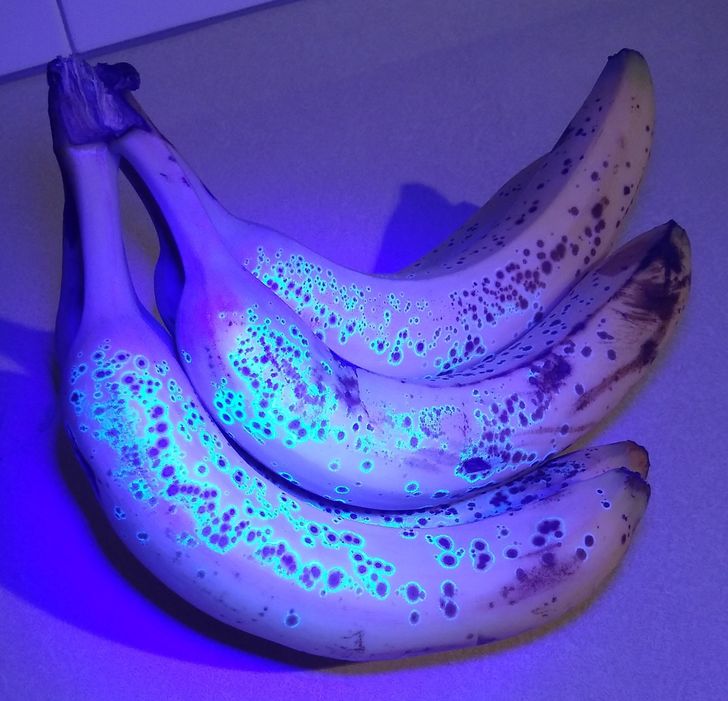 1. The glow around brown spots on bananas under an ultraviolet light