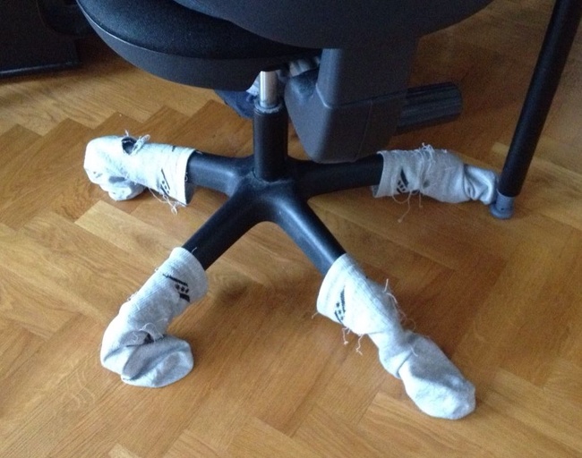15. Not sure how to protect your wooden floor? Just use the sock technique!