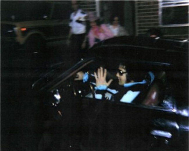 Here's the King returning home on August 16th 1977, after a routine visit to his dentist. That night, Presley suffered a heart attack and died.