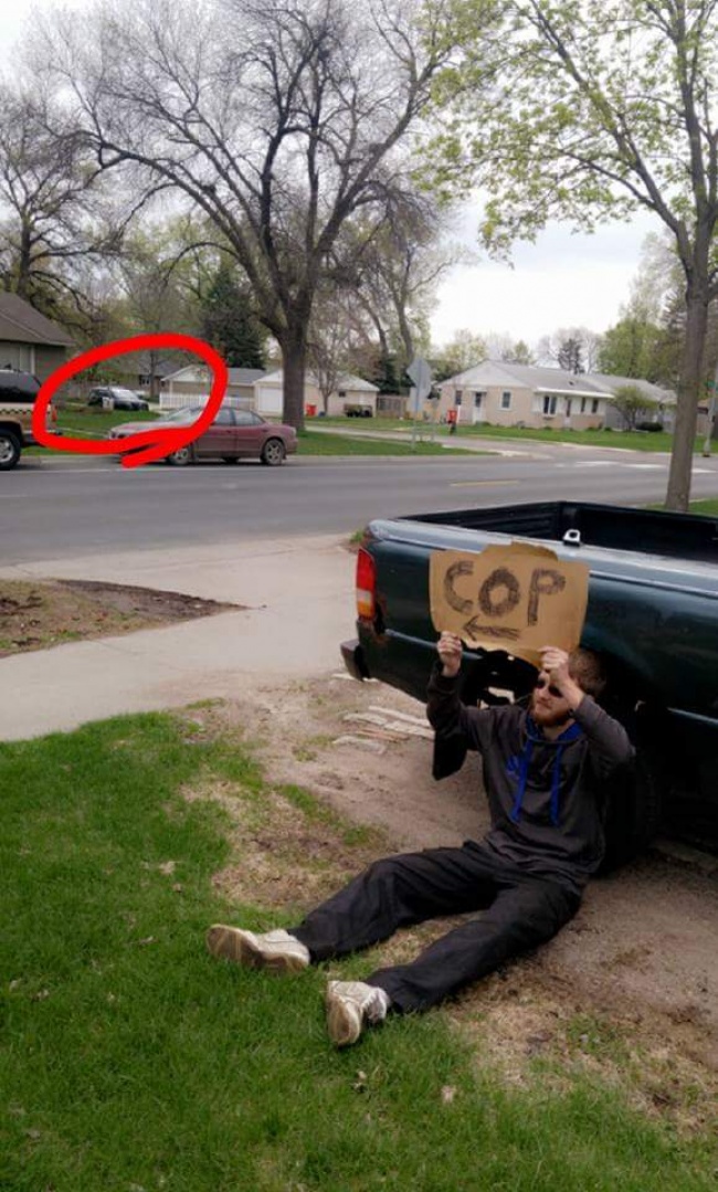 13. "My girlfriend wanted a cool photo of us and this biker offered to take the picture on the condition that he, too, could take a piggyback!"