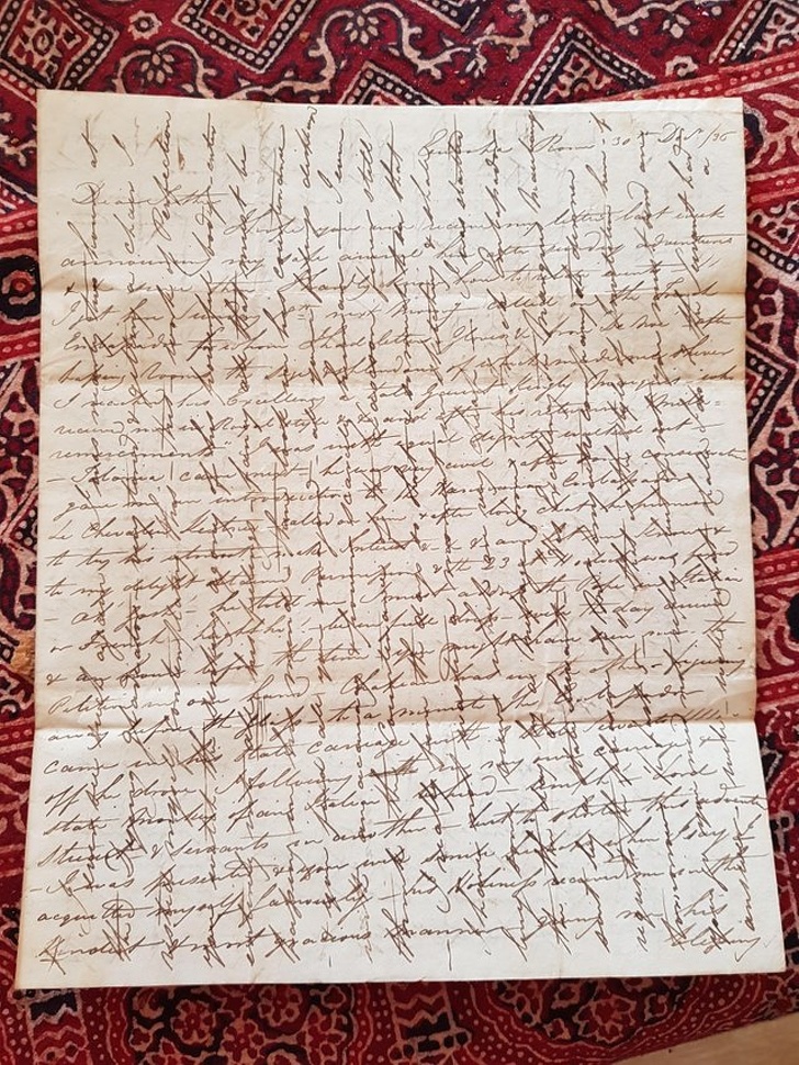 11. “A letter from one of my relatives in 1836 was written first one way across the page and then continued at a 90-degree angle.”