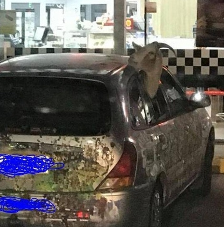 10. Just a goat catching a ride home...