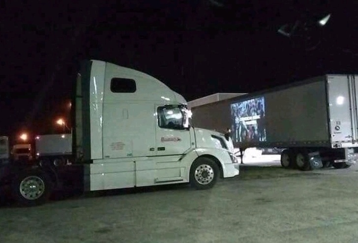 7. In the middle of the week during winter, it’s not easy being a truck driver... unless you create your own drive-in theater!