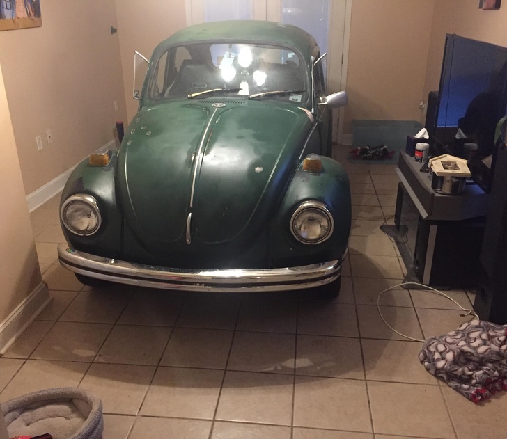 3. The day her husband discovered that he could park the car inside the house