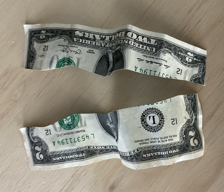 12. This little girl decided this bill was too large for her wallet, so she cut it in half